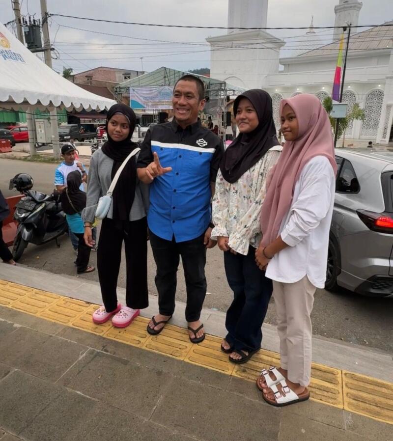 Aksi spontan Bupati Irwan itu pun disambut antusias oleh pengunjung yang tengah menunggu waktu berbuka puasa. Selain itu, Ia juga melayani warga yang ingin berfoto bersama.