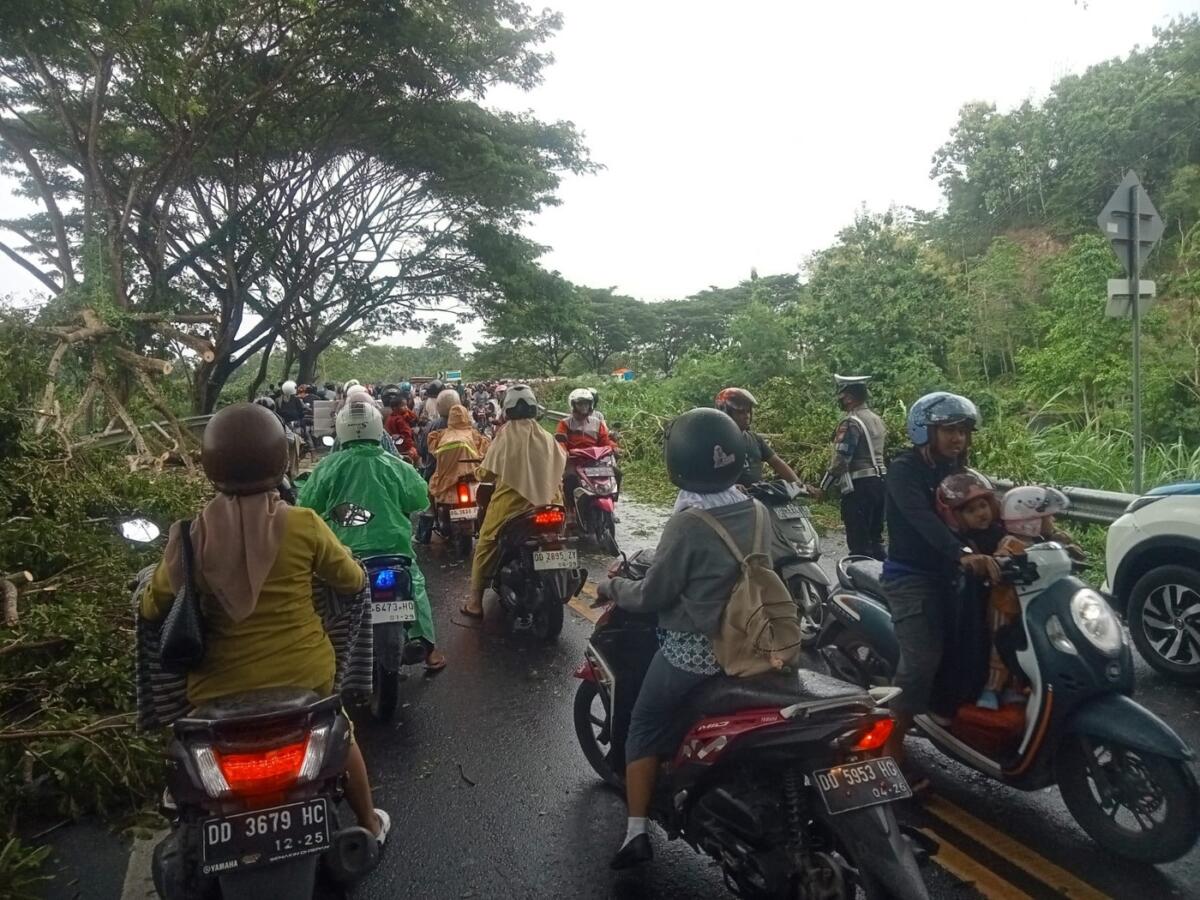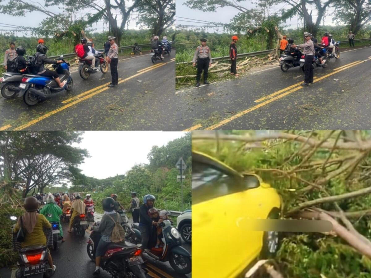 Akibat angin kencang, beberapa pohon tumbang dan menutup badan jalan sehingga menyebabkan kemacetan panjang dari kedua arah. Dalam peristiwa tersebut, satu unit mobil sempat tertimpa pohon tumbang dan berhasil dievakuasi tanpa menimbulkan korban jiwa.