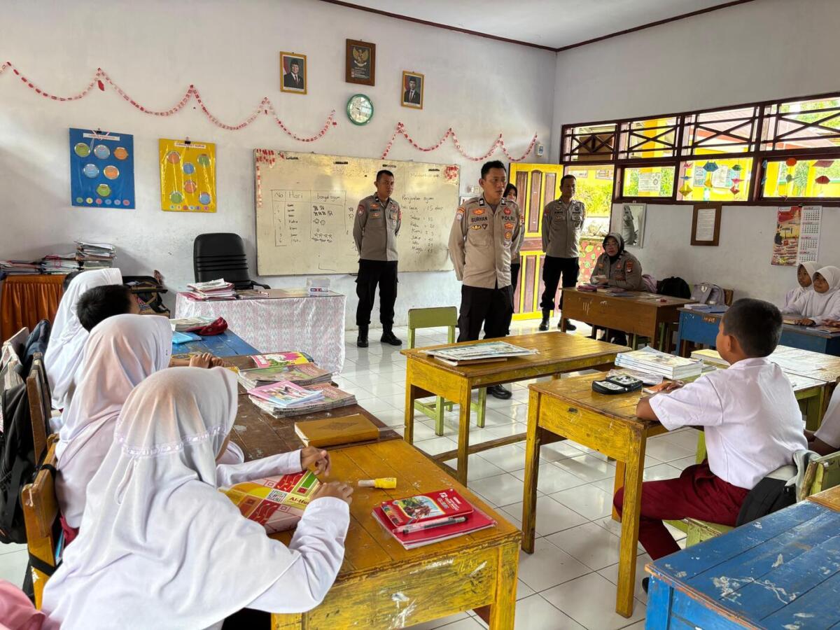 SOPPENG, BKM — Satuan Binmas Polres Soppeng melaksanakan kegiatan Police Goes to School di SDN 28 Malaka dalam rangka menjaga situasi keamanan dan ketertiban masyarakat (kamtibmas) selama bulan suci ramadan, Senin (2/3).