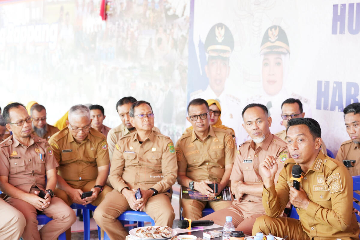 SIDRAP, BKM — Bupati Sidrap Syaharuddin Alrif bersama Wakil Bupati Nurkanaah memimpin coffee morning dengan para pejabat daerah, Senin (26/1). Kegiatan menjadi forum koordinasi dan evaluasi kinerja OPD, digelar di panggung lapangan Kompleks SKPD Sidrap, Kelurahan Batu Lappa, Kecamatan Watang Pulu.