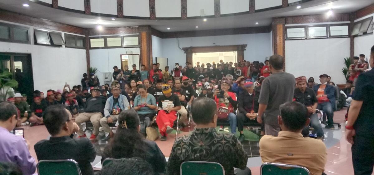 Bupati Tana Toraja Zadrak Tombeg, Wabub Erianto, Ketua DPRD Kendek Rante, Wakil Ketua DPRD Leonardus Tallupadang dan Evivana Rombe Datu, dan anggota dewan lainnya menerima aspirasi di lobi DPRD.